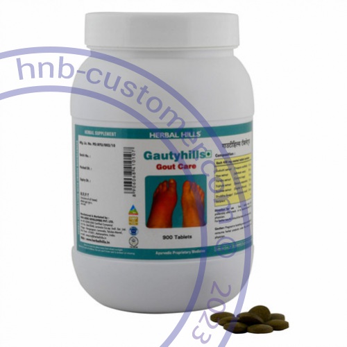 Gautyhills Tablets - Gout Care Formula. Gout Care Ayurvedic Formula Gautyhills tablets has an anti-inflammatory & analgesic properties of Guduchi, Vasa & Shuddha Guggul aid in symptomatic relief of Gout, including joint pain, tenderness, swelling and inflammation. Helps maintain healthy uric acid levels and edema.Helps maintain joint health.