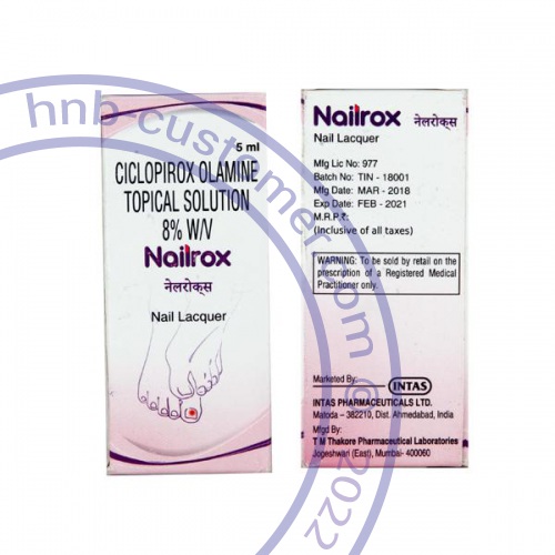 Nailrox Nail Lacquer is an antifungal medication with an active ingredient ciclopirox. It is used in the treatment of fungal skin and nail infections. It works by stopping the growth of fungi, thus treating the infection.