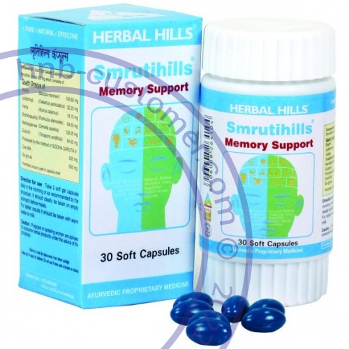 Ayurvedic Memory Booster Smrutihills has the revitalising & memory stimulant properties of Brahmi, Jyotishmati, Mandukparni which may help revitalize the nerve and brain cells. It may help enhance memory, concentration, intelligence. Antistress & immuno-stimulant properties of Shankhpushpi & Guduchi may help reduce stress, anxiety & improves intelligence power of retention & memory.